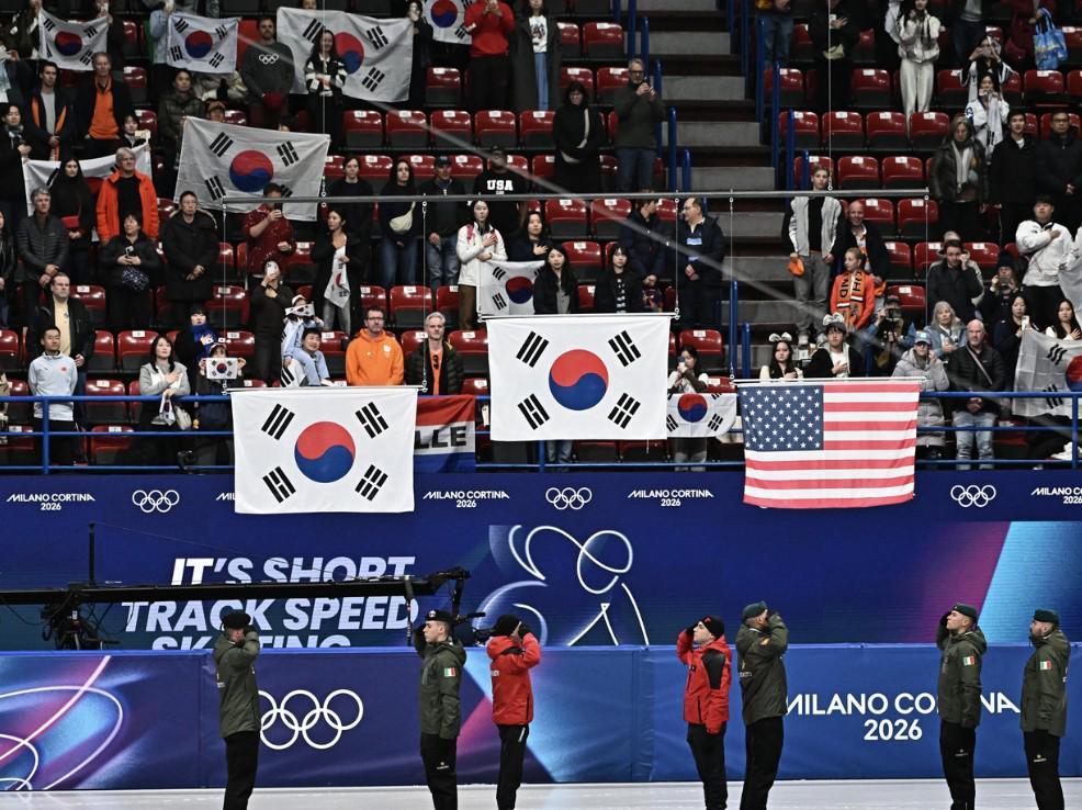 韩国体育奥林匹克委员会于20日宣布,已就2026年米兰-科尔蒂纳冬季奥运会短道速滑颁奖仪式上升起错误的韩国国旗一事,正式向国际奥委会和奥运会组委会提出抗议,并要求立即采取纠正措施。